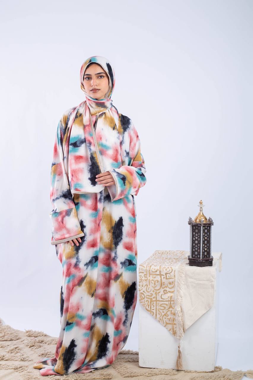 Retro Prayer Isdal .. Patterned and plain Isdal with elegant lace details, made from anti-shrink viscose. Fits up to 95 kg, offering a perfect blend of comfort, style, and everyday elegance.