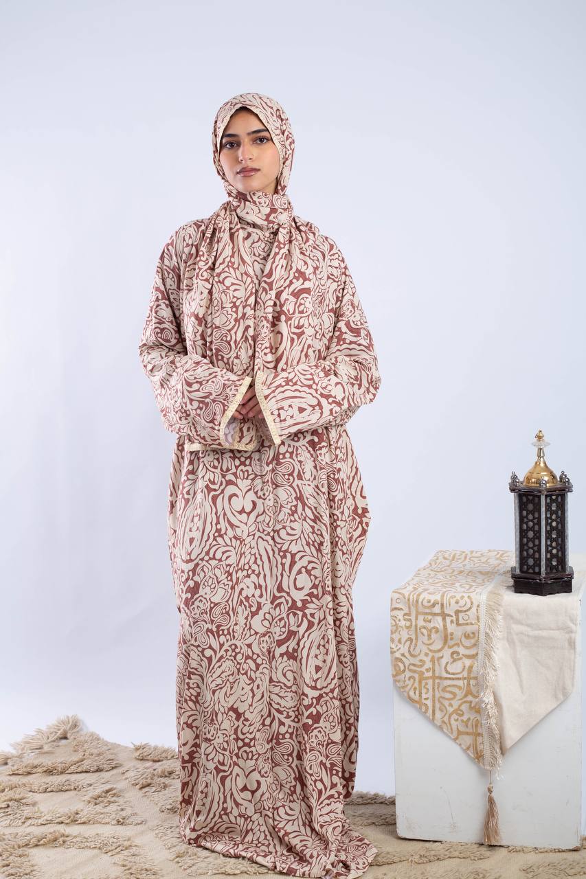 Retro Prayer Isdal .. Patterned and plain Isdal with elegant lace details, made from anti-shrink viscose. Fits up to 95 kg, offering a perfect blend of comfort, style, and everyday elegance.