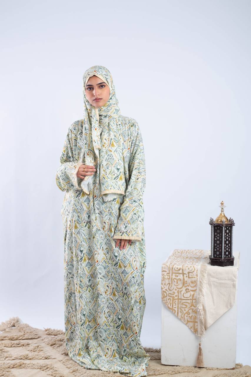 Retro Prayer Isdal .. Patterned and plain Isdal with elegant lace details, made from anti-shrink viscose. Fits up to 95 kg, offering a perfect blend of comfort, style, and everyday elegance.