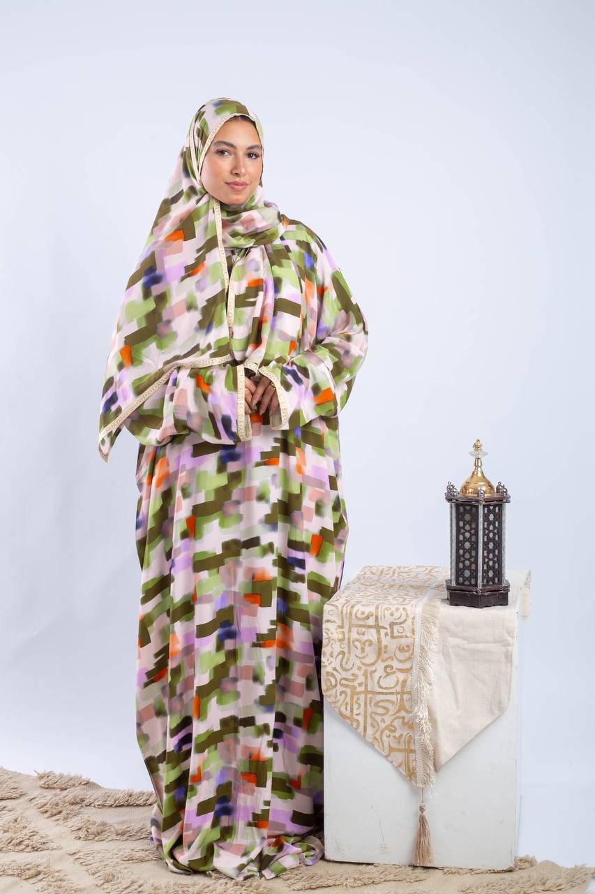 Retro Prayer Isdal .. Patterned and plain Isdal with elegant lace details, made from anti-shrink viscose. Fits up to 95 kg, offering a perfect blend of comfort, style, and everyday elegance.